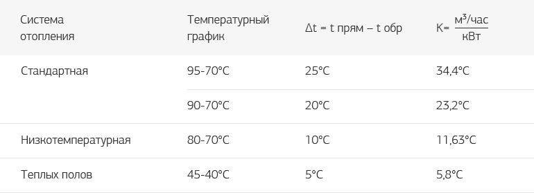 Если установка не оснащена ни терморегулирующим вентилем, ни смесителем, ZF = 1,3; для контура с терморегулирующим вентилем ZF = 1,3 * 1,7 = 2,2; для контура со смесителем ZF = 1,3 * 1,2 = 1,6; когда система включает оба прибора ZF = 1,3 * 1,7 * 1,2 = 2,6.