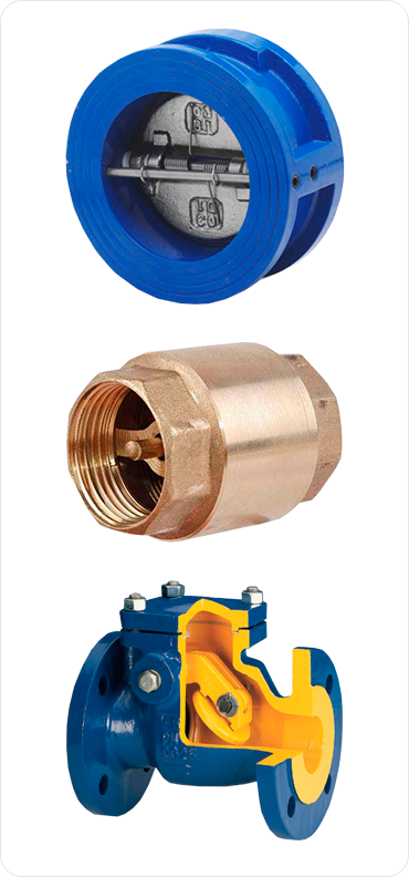 Основными видами обратных клапанов являются собственно обратные клапаны и обратные затворы, главное их различие — в конструкции затвора (элемента, который перекрывает поток среды, садясь в седло), у первых он выполняется в виде золотника, у вторых — в виде круглого диска, который часто именуют захлопка.