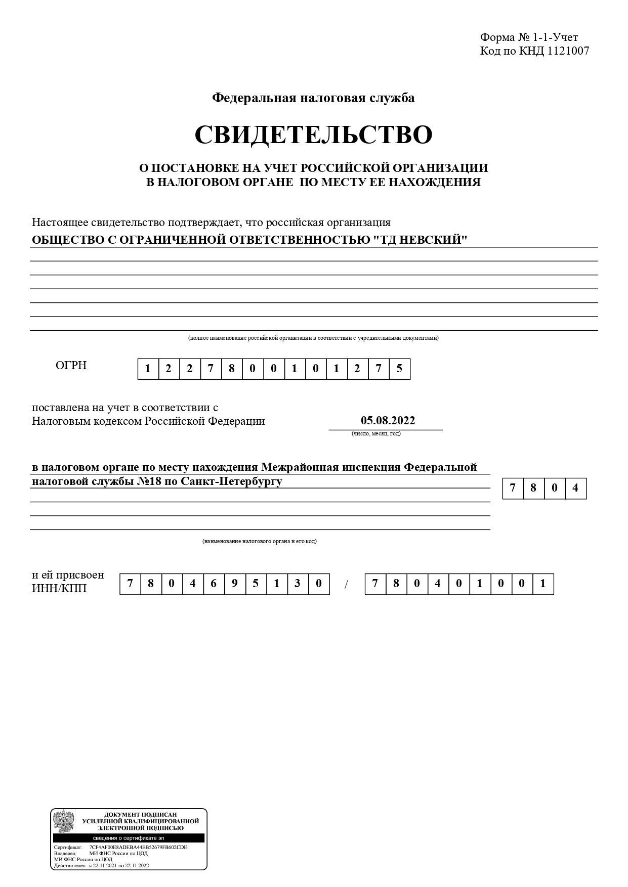 ООО «ТД Невский» реквизиты